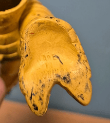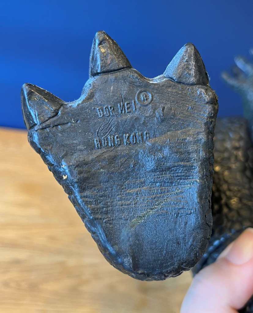 What this allows us to see is that the molds of the legs at least for these castings were re-sculpted or duplicated and adapted, and in carving the initial “CHINA” in reverse, a simple human error led to the inversion of the ‘N’. There may be examples with just “CHINA” in this form, but I have not seen any. Then these new molds had further information added to them: “MADE IN” and sometimes “CE”, showing this process happened as a later adaptation of an earlier design.