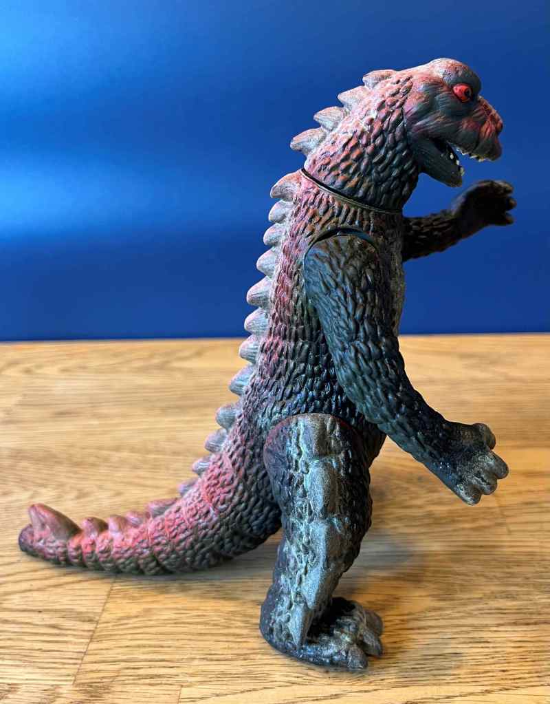 The closeness to the secondary Imperial model in this ‘chonky leg Godzilla’, as well as the lack of articulation in the tail causes us to place this model’s production in the second half of the 1980s.