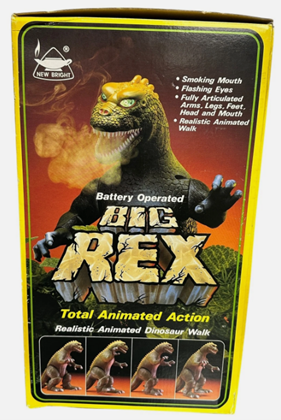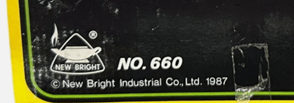 I do not own one of these, and so all information here has been gleaned from online sale sites. This bootleg is clearly a copy of one of the popular sculpts of the Dor Mei model, and stands about the same height (reportedly 13” tall). It is battery operated and walks and has a smoking mouth and light-up eyes. It clearly identifies its manufacturer on its side and on the packaging as New Bright Industrial Co. ltd. of Wixom, MI, USA (founded 1955), and its place and date of production as Hong Kong and 1987.
