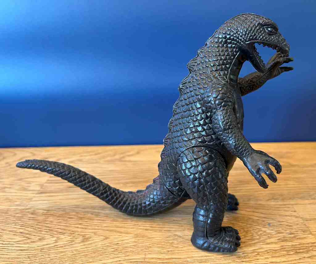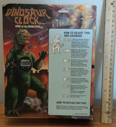 So, to summarise, around November 1989, Orion Home Videos gave away the original model of this Godzilla bootleg as a free gift with a promotion of theirs. The packaging allows us to see that they were made in Hong Kong, presumably from an original sculpt for this item, pulling in elements of the numerous Chinese Godzilla bootlegs. Then, presumably attracted by the lack of any copyright issues as the clocks were themselves bootlegs, a Chinese manufacturer produced close copies in hard rubber that were slightly taller, and in turn one of those was copied in the months or years that followed on the European mainland, in Serbia, in the rump of the former Yugoslavia, to produce the subject of this post.