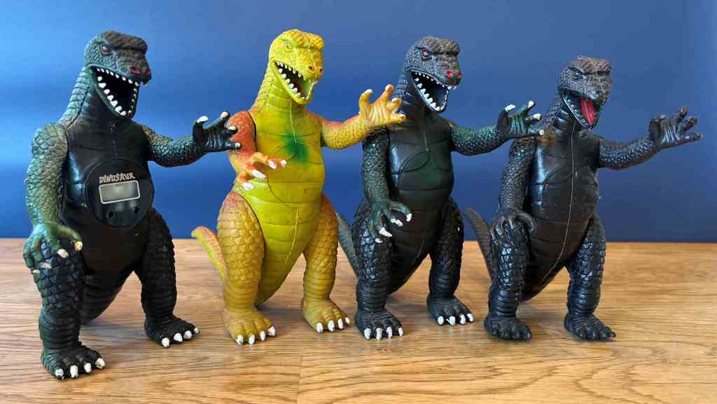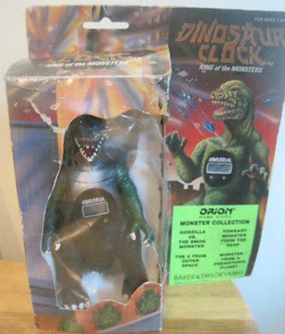 (From left to right: Orion clock Godzilla; Chinese bootlegs of that in yellow and black; Serbian ‘Oz’ Godzilla)